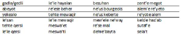 The Ethiopian People’s Revolutionary Party, the All Ethiopia Socialist Movement and the Tigray People’s Liberation Front were churning out plenty of leaflets with equally numerous Ge’ez words interspersed between the Tigrinya and Amharic language. Their formidable enemy, the Derg, was also in the same habit. In short, all the political groups harnessed Ge’ez for their ill-conceived modernization. This state of affairs was exceptional for the time in which nearly all of the major political organizations were quick to point out the alleged mistakes of the other. Here are a few words compiled for the benefit of the reader.
