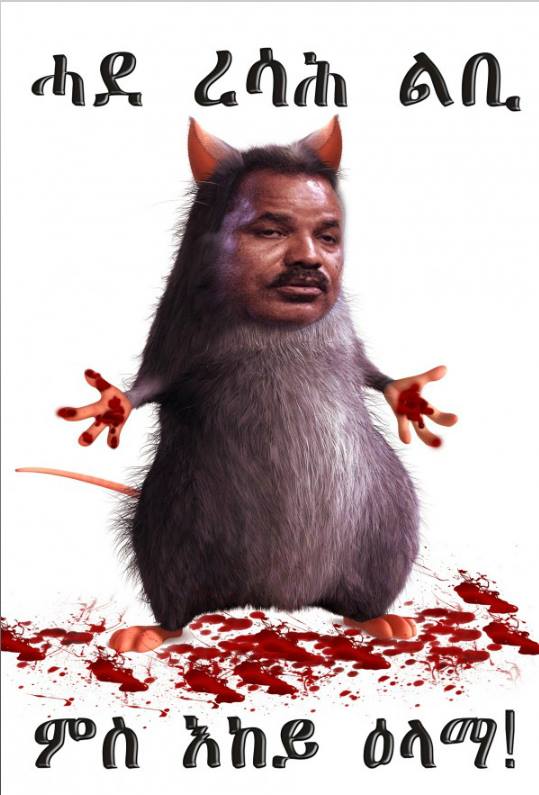 (Asmara 01-11-2013) Team Arbi Harnet (Freedom Friday) in Eritrea have this morning posted many stickers with the president’s face in a rat’s body in an operation they nick named ‘Rat chase Asmara!’.
