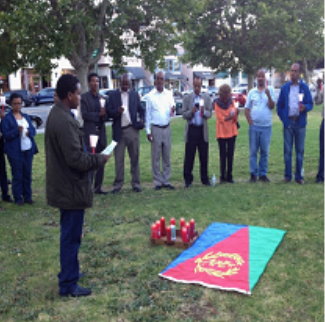 ቀዳም ምሸት 22 ሰነ 2013 ነቶም ሂወቶም ከፊሎም ናጻ ሃገር ዘርከቡና ጀጋኑ ስዉኣትና ንምዝካር፡ ኤርትራውያን ተቐማጦ በይ-ኤርያ ኣብ ለይክ መሪት ኦክላንድ ካሊፎርኒያ ሽምዓ ብምብራህ ዝኽሪ ሰማእታት ኣኽቢሮም። እቲ ብዓል ብሓልዮትን ሓባራዊ ስራሓን ናይ ኣባላት ሲቪካዊ ማሕበር፣ስምረት መንእሰያት ኤርትራ ንለውጢ፡ ፖሊቲካዊ ውድባት፡ ሃገራዊ ባይቶ ንዲሞክራስያዊ ለውጢን ሰልፊ ዲሞክራሲ ህዝቢ ኤርትራን፡ ከምኡ’ውን ውድባዊ ጸጊዕ ዘይብሎም ሃገራውያንን ዝተዳለወ እዩ ነይሩ። ብርክት ዝበሉ መንእሰያትን ገዳይም ተጋደልቲን ድቂ-ኣንስትዮን ዝርከቡዎም ኤርትራውያን ዝተሳተፍዎ ኮይኑ ስዉኣትና መዳርግቲ ዘይብሉ ዋጋ ኡንኮ ሂወቶም ክኸፍሉ ከለዉ ህዝብና ሰላምን ቅሳነትን ረኺቡ ኣብ ሃገሩ ተኸቢሩ ምእንቲ ክነብር እምበር ኣብ ዝገደደ ሕስረትን ውርደትን ክኣቱን መንእሰያትና ኣደዳ ስደትን ስቅያትን ክኾኑን ሕሉፍ ሓሊፉ ከም ጤለ በጊዕ ተሓሪዶም ኩላሊቶም ክሽየጥን ከምዘይነበረ ብምረት ገሊጾም።