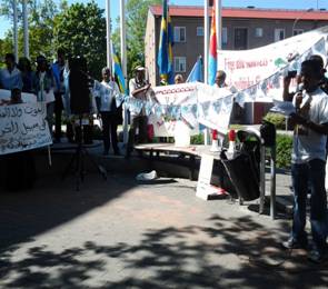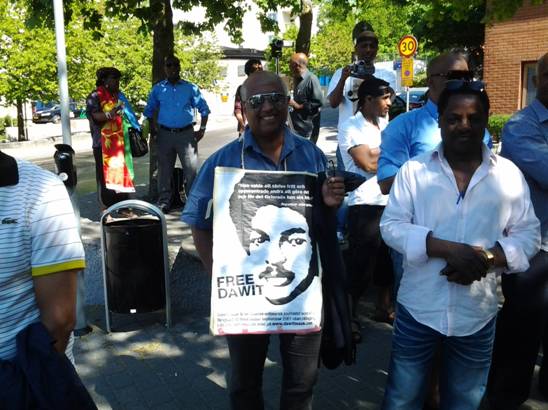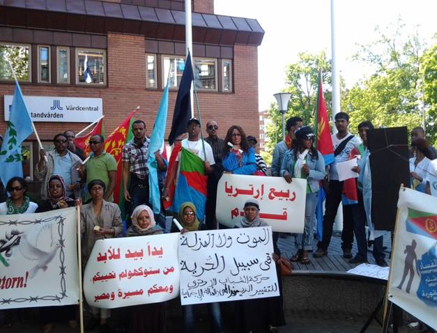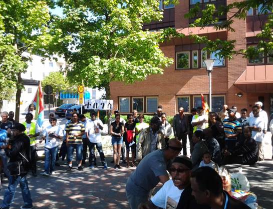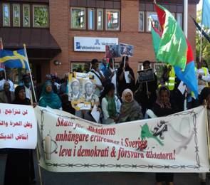 ብምኽንያት መዓልቲ ነጻነት ኤርትራ ኣብ ሽወደን ዝምቕማጦም ኤርትራዉያን ደለይቲ ፍትሒ ሎሚ 25 ግንቦት 2012 ኣብ ቅድሚ ኤምባሲ ኤርትራ ስቶክሆልም ዉኦዉዕ ሰለማዊ ሰልፊ ኣካይዶም።